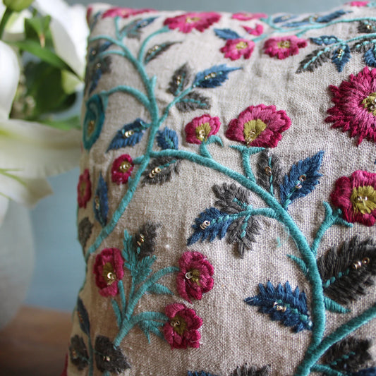 Gulaabi Jahan Embroidered Cushion Cover (14 by 20 Inches)