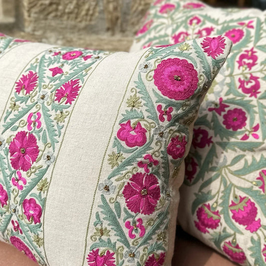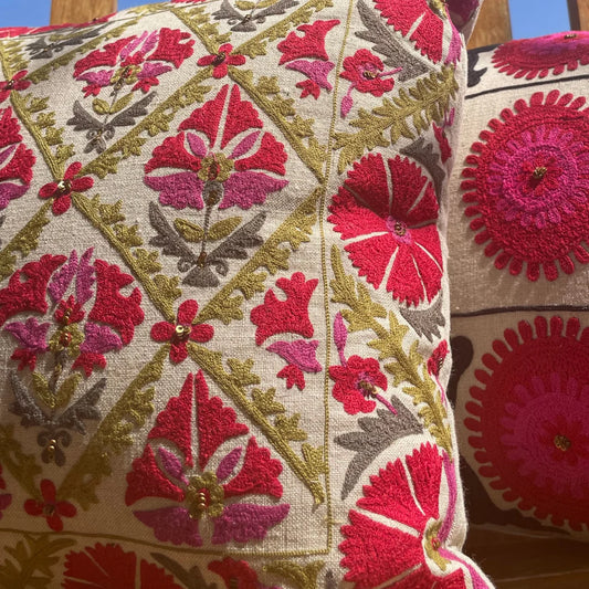 Barfi Phool Suzani Cushion Cover (14 by 20 Inches)