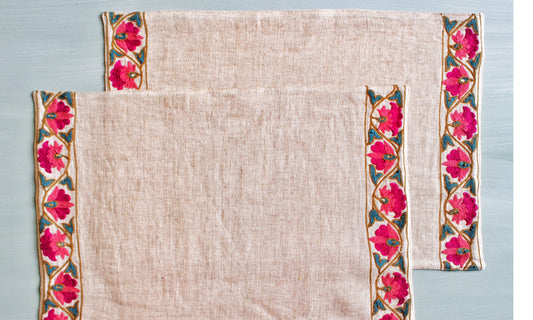 Suzani Embroidered Linen Placemats (Set of 4) (13 by 20 Inches)