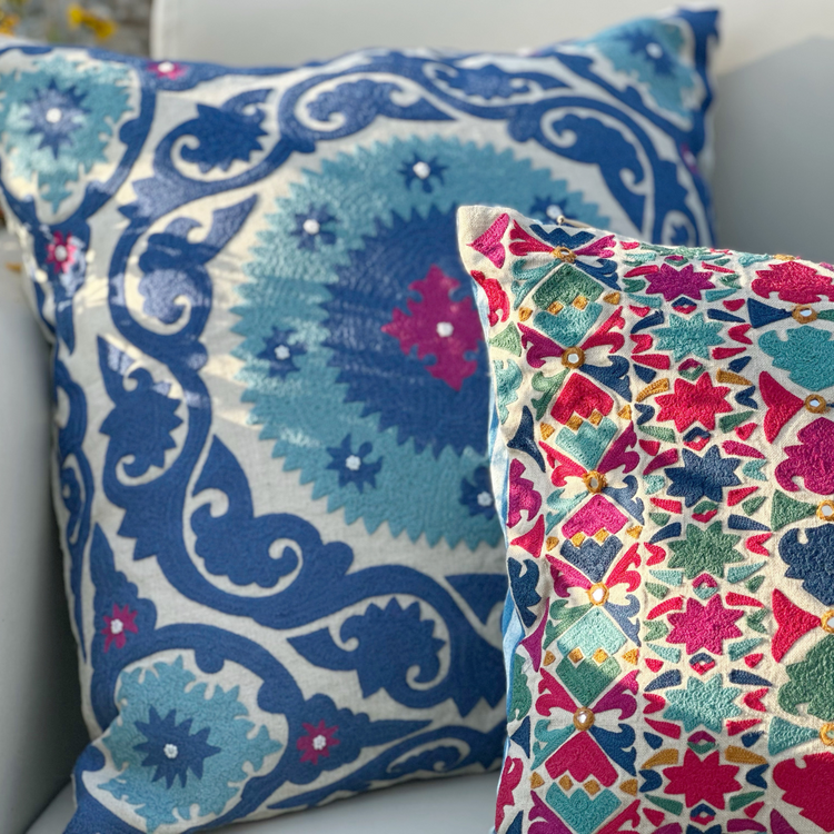 Blue Ocean Suzani Cushion Cover (18 by 18 Inches)