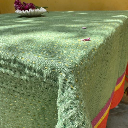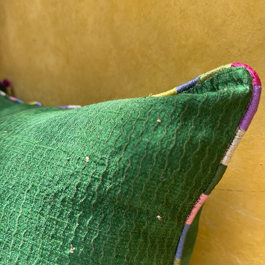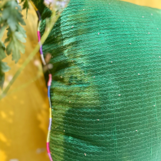 Tuscany Green leher Raw Silk Cushion (14 by 20 Inches)