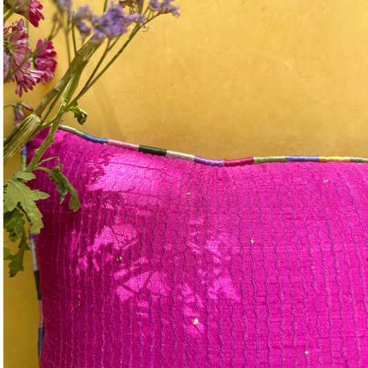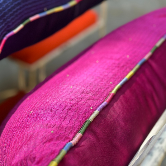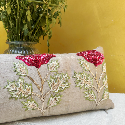 Poppy Sitara Handcrafted Raw Silk Cushion (8 by 16 Inches)