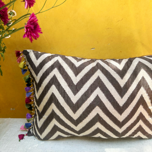 Tuscany Chevron Silk Linen Cushion Cover (14 by 20 Inches )